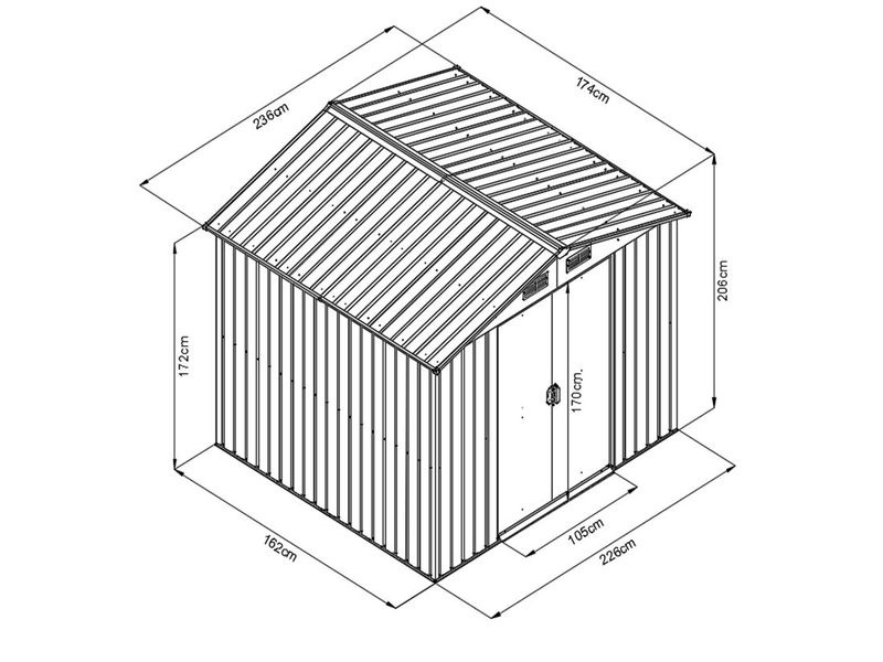Kovový záhradný domček je možné použiť na uskladnenie záhradkárskych, športových, bazénových, grilovacích, kempingových, motoristických a ďalších potrieb. Ide o jeden z najkvalitnejších domčekov na slovenskom trhu so silou steny 0,25 mm.