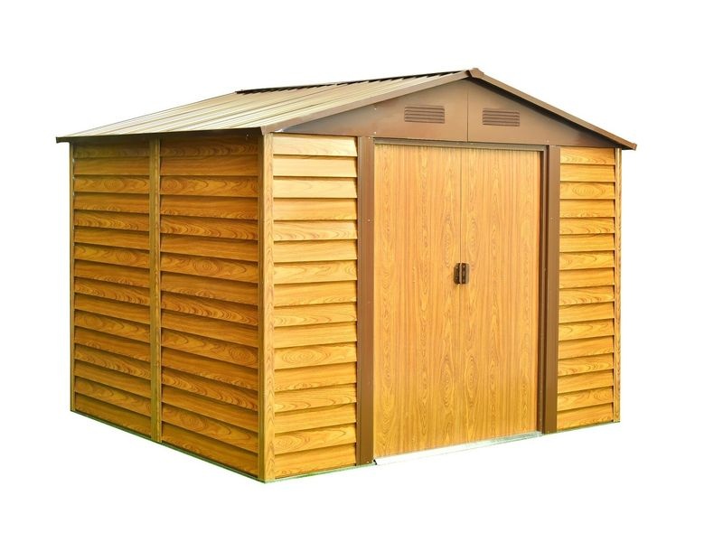 Kovový záhradný domček je možné použiť na uskladnenie záhradkárskych, športových, bazénových, grilovacích, kempingových, motoristických a ďalších potrieb. Je vyrobený z pozinkovaného vodorovne profilovaného plechu a vzhľadovo (dizajnovo i farebne) sa približuje drevenému domčeku.