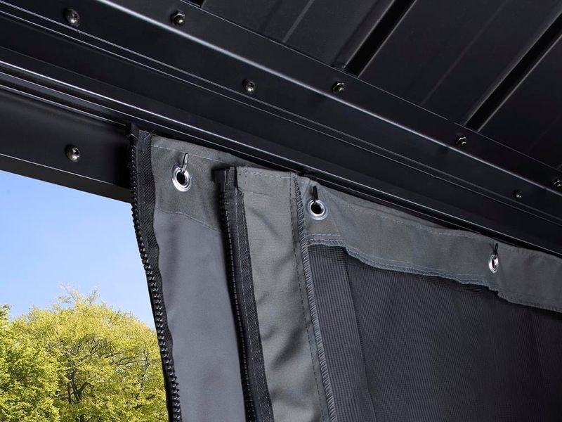 Súčasťou altánku sú nylonové moskytiéry. Je možné dokúpiť polyesterové závesy. Oboje je možné vďaka systému dvojitých koľajníc pripevniť k sebe. Na rozdiel od iných modelov sa nejedná o jedno alebo druhé, ale moskytiéru aj závesy je možné používať súčasne.