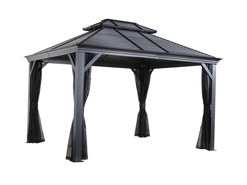 Hliníkový altánok vám vytvorí príjemné a útulné miesto pre odpočinok hneď vedľa vášho domu alebo kdekoľvek na záhrade. Je opatrená moskytiérou, ktoré vás počas vlahých letných večerov ochráni pred komármi.