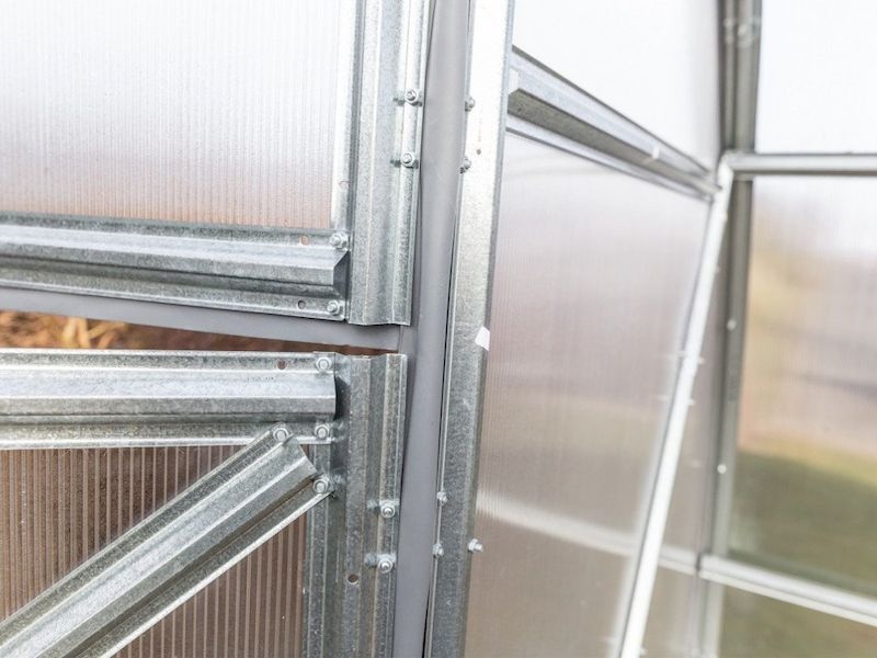 V skleníku sa používa pôvodný systém pripojenia a profily. Na samotnú výstavbu skleníka odporúčame vyhradiť si aspoň 2 celé dni. Stavba nie je technicky náročná, avšak vzhľadom na robustnosť konštrukcie, presnosť rezania polykarbonátu (vyrezávanie predných okien, dverí a oblúkov pomocou odihlovacieho noža) a počet skrutiek si vyžaduje relatívne viac času.