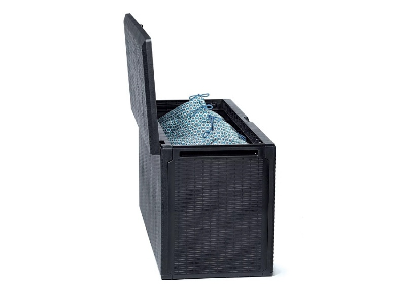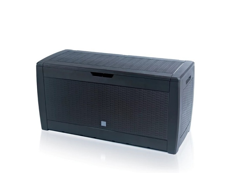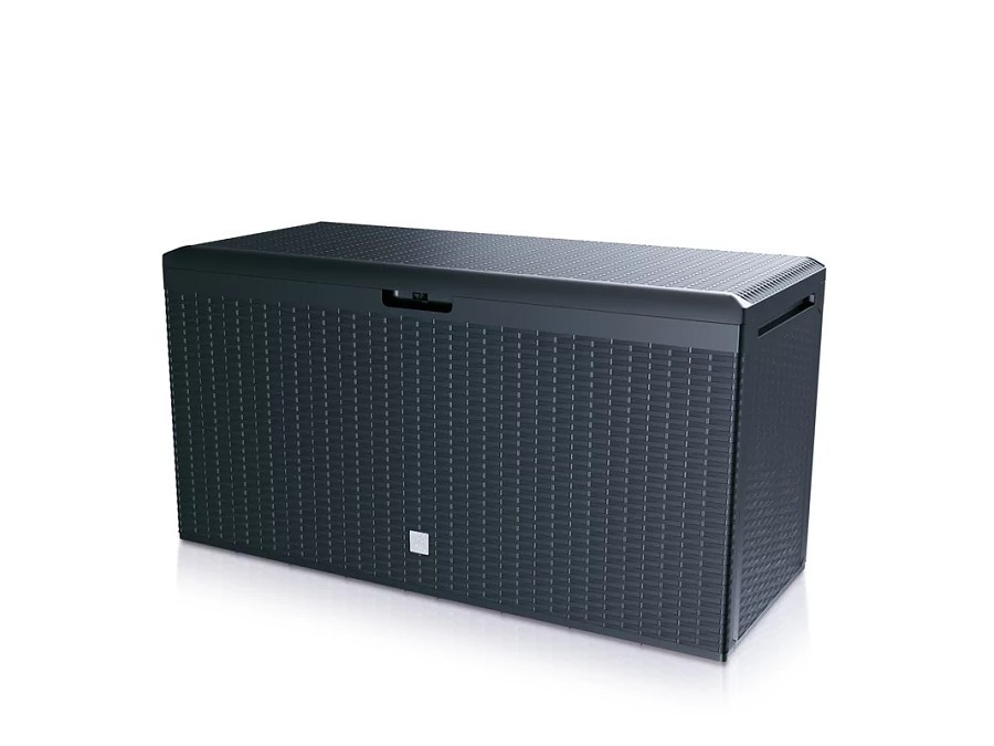 Úložný box na záhradu je vyrobený z plastu, ktorý odoláva bežným klimatickým vplyvom. Súčasťou konštrukcie je vstavaný držiak na visiaci zámok – plastový box tak jednoducho uzamknete a ochránite uschované predmety.