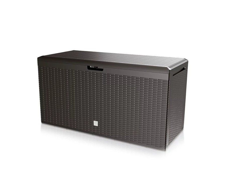 Úložný box na záhradu je vyrobený z plastu, ktorý odoláva bežným klimatickým vplyvom. Súčasťou konštrukcie je vstavaný držiak na visiaci zámok – plastový box tak jednoducho uzamknete a ochránite uschované predmety.