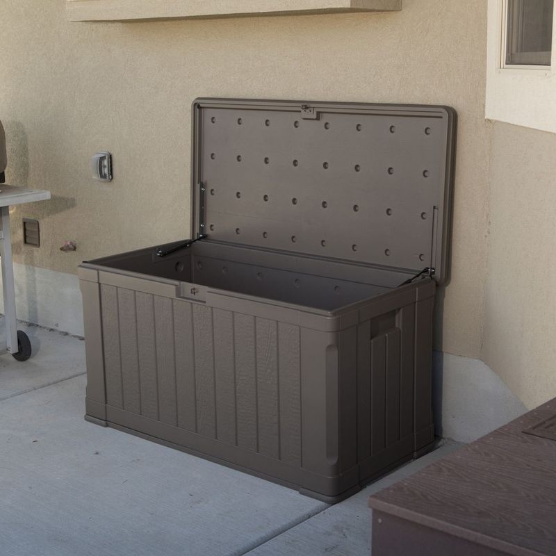 Svoje využitie nájde úložný box aj ako stôl pre záhradné párty. Box je možné proti nenechavcom uzamknúť visiacim zámkom (nie je obsahom dodávky).