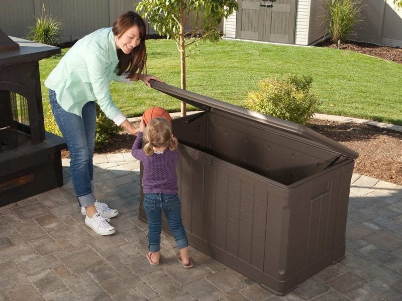 Svoje využitie nájde úložný box aj ako stôl pre záhradné párty. Box je možné proti nenechavcom uzamknúť visiacim zámkom (nie je obsahom dodávky).