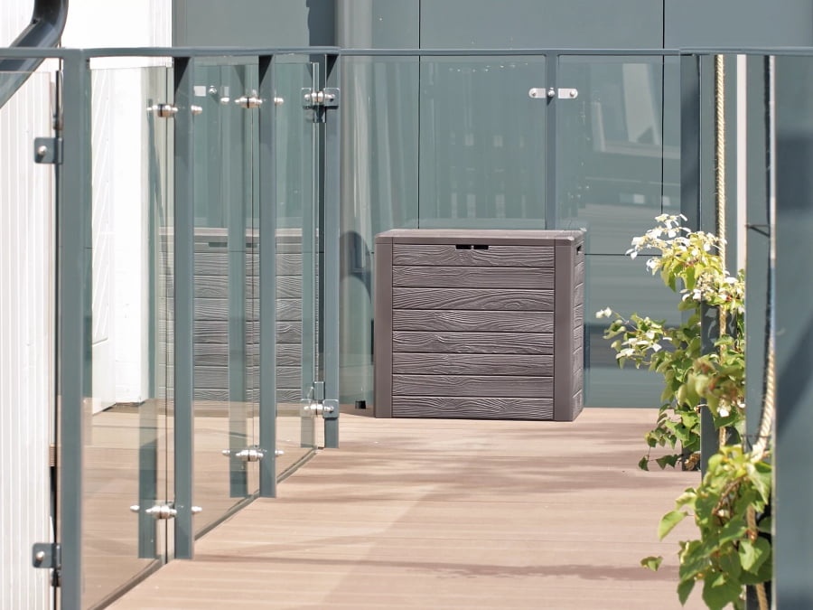 Bočné panely sú zakončené textúrou inšpirovanou ratanovým copom a prírodným bambusom. Záhradný odkladací box je prakticky bezúdržbový a nemusí sa nijako konzervovať.