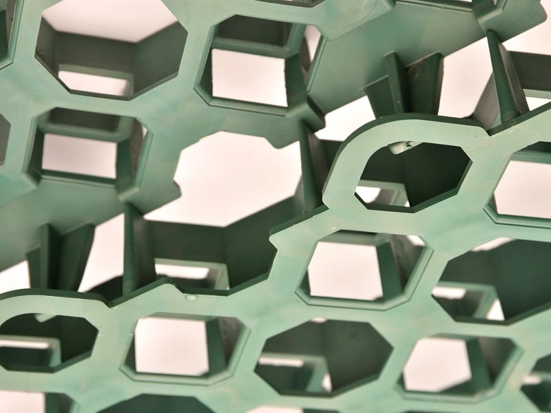 Zatrávňovacie tvárnice sa vyrábajú z odolného polyetylénu a polypropylénu, neobsahujú ťažké kovy. Materiál odoláva UV žiareniu, dažďu, vetru, mrazu, cestnej soli, nafte aj benzínu, a naviac je plne recyklovateľný. Nevylučuje škodlivé látky do okolitej pôdy.