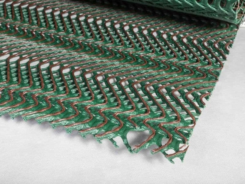 Výrobný systém využíva koextrúziu dvoch polymérov: HDPE (polyetylén vysokej hustoty) a EVA (etylén-vinylacetát). Poskytuje extrémnu pevnosť a odolnosť proti preklzávaniu kolies automobilov.