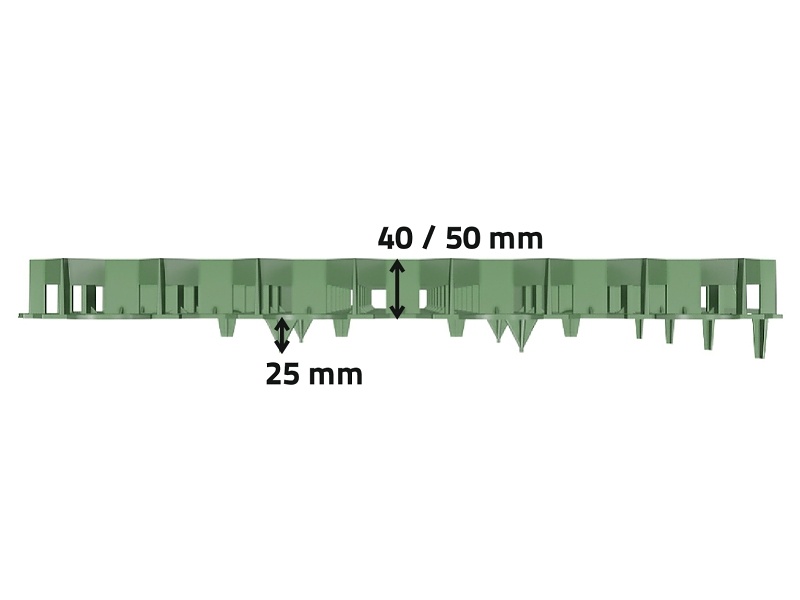 Výška dlaždíc – samotné bunky majú výšku 4 alebo 5 cm (podľa varianty dlaždíc). Na spodnej časti dlaždíc sú kotevné čapy výšky 2,5 cm, ktorými ukotvíte dlaždice do zeminy. Celková výška vrátane čapov je 6,5 alebo 7,5 cm.